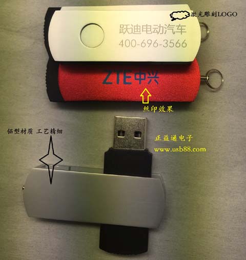 絲印LOGO,激光雕刻LOGO實圖拍照. 本產品采用質量輕便的塑料材質和鋁鎂合金材質制作而成。鋁質的表面盡顯高質感,十分有品位。配合經典的長形造型,尊貴氣質柔然而生。 在安全方面,U盤采用旋轉帽的方式